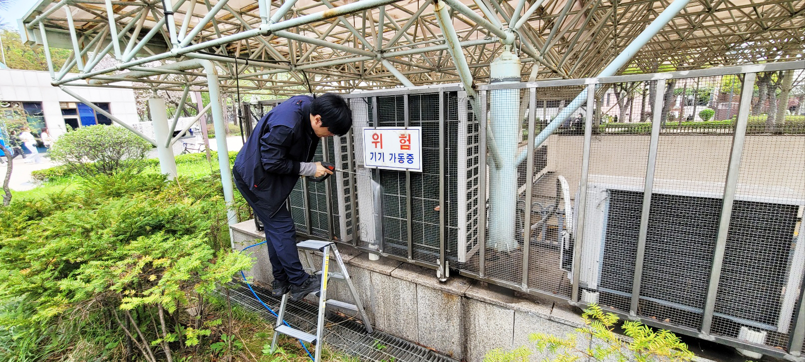 실외기 청소는 외벽에 설치 된 곳 배수 시설이 없는 곳은 작업이 불가합니다